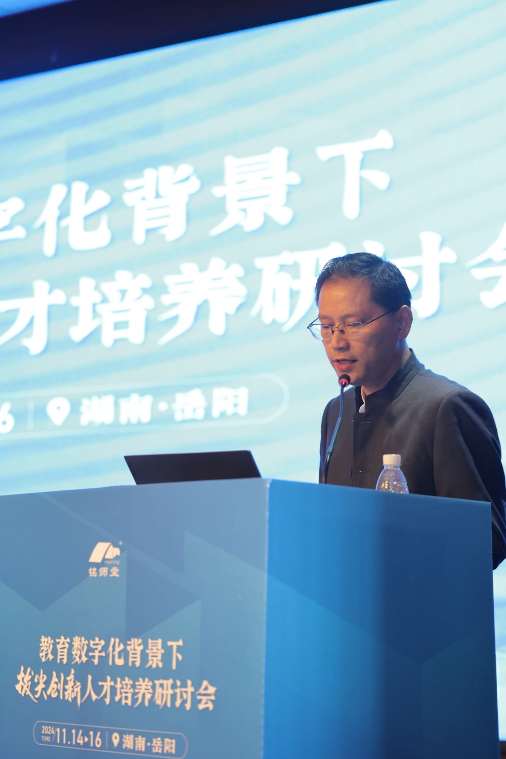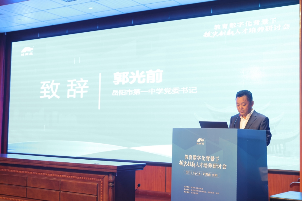 岳阳市一中党委书记郭光前在致辞中表示,希望通过本次研讨会,搭建一个交流与合作的平台,汇聚各方智慧,共同推动教育数字化与拔尖创新人才培养的深度融合。希望通过专家的指引,找到更多适合各自学校的拔尖创新人才培养方法和策略,为我国的教育事业发展注入新的活力。