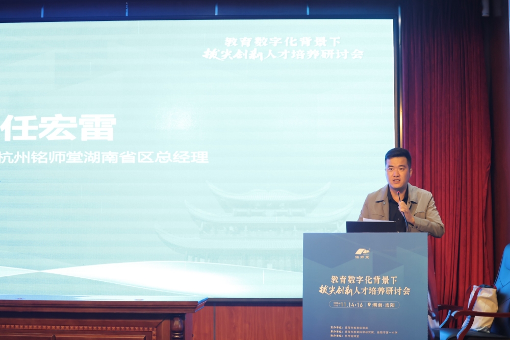 铭师堂湖南省区总经理任宏雷在致辞中说,铭师堂将加大优质教育资源供给,利用数字化手段,让更多学生受益;加强素质教育,培养学生的综合能力和创新思维;助力建设高素质专业化教师队伍,提供更多的专业发展支持;发挥智慧教育新优势,推动数字教育的未来新发展。