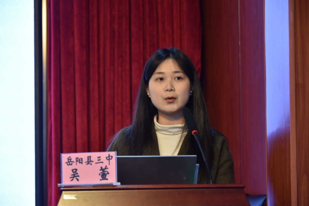 岳阳县三中吴萱老师就一轮复习经验和二轮复习策略进行了分享,在一轮复习中,教师将知识分类成知识点、知识线与知识面,通过默写等形式督促过关;二轮复习要完善知识体系、强化解题指导、严格答题规范以及固本强基、狠抓落实。
