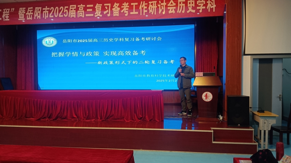 2025年2月27日,为深入推进高中教育"筑梦工程",研讨新高考背景下的新举措、教育数字化视域下高考的新趋势,加强高考备考的针对性和有效性,科学谋划,精准施策,实现全市高中历史教学协调发展,在岳阳市一中开展了2025届高三复习备课工作历史分科会。