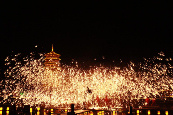 在铜官窑,学生们在飞行影院体验 “湖湘大地”全景漫游,在黑石号特技秀中观赏唐代海上贸易盛景,在机器人博物馆内感受科技与传统的碰撞。舜子街青石板路上,西藏班学子随心所欲打卡拍照;湖湘名人馆内,历史课代表罗布达加指着左宗棠雕像感慨:“他和我们藏族英雄一样心怀家国!”夜幕降临时,非遗绝技“打铁花”照亮天际,1500℃的铁水在空中绽放成金色花雨,令观赏的学生们欢呼雀跃。