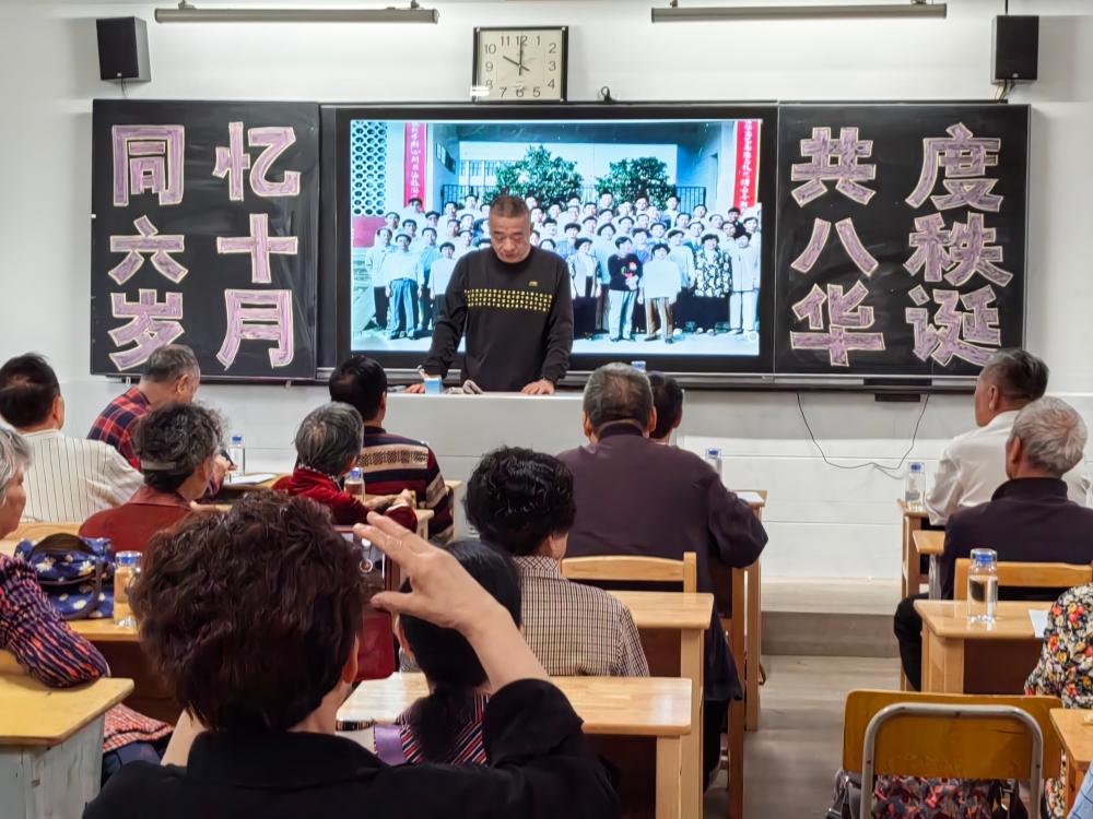 六秩同窗聚,八旬共寿辰。书声犹在耳,岁月鬓如银。