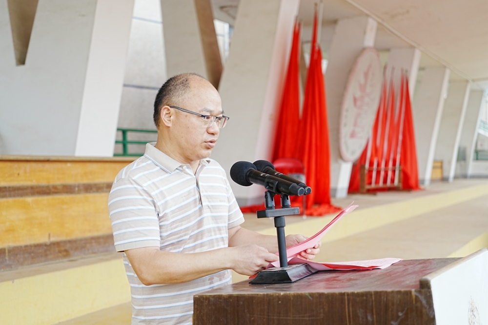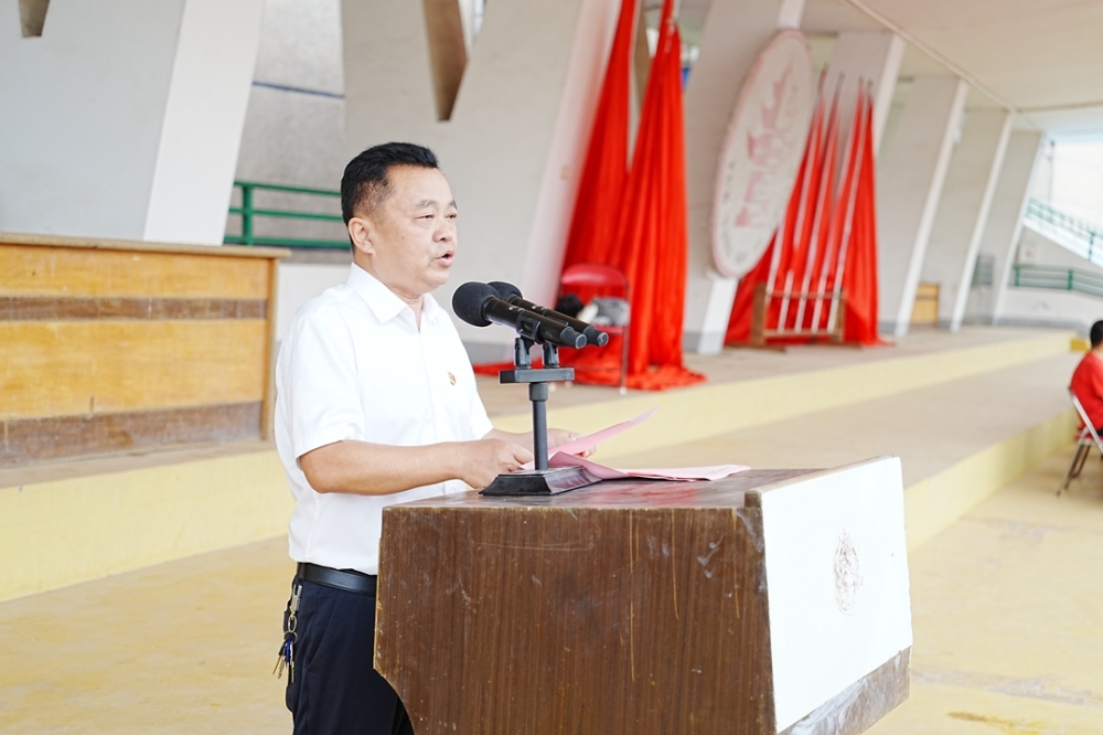 9月1日晨,春华山沐浴在金色秋光中。郭光前书记、吴樵夫校长携学校全体领导班子出席。本次开学典礼由政教处主任文志斌主持。