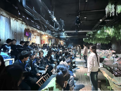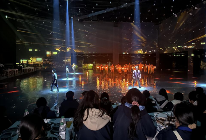 随后,大家一同观看了沉浸式生态演出《洞庭幻境》。演出以诗意的手法再现了洞庭湖四季变迁、渔村烟火、江豚拜风、候鸟欢歌等动人场景。同学们仿佛穿越时空,成为湖上渔村的客人,感受人与自然和谐共生的美好图景。
