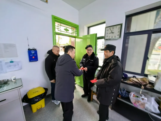 年饭之前,党委书记郭光前、校长吴樵夫、副校长刘敏慰问了春节留校值班的保安、保洁、宿管及食堂工作人员,感谢他们坚守岗位,辛勤付出,保证了学校寒假期间各项工作的正常开展。
