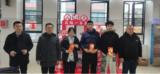 春风送暖入屠苏,万家团圆贺新春。除夕当天,正值阖家欢聚之时,岳阳市一中的校园里却洋溢着别样的热闹与温情。为了让远离雪域高原的西藏班孩子们感受到家的温暖,学校党委书记郭光前、校长吴樵夫、副校长刘敏、毛雪琴,以及办公室主任陈双、民教处主任王碧宇等领导,与全体留校西藏班师生欢聚一堂,同吃团年饭,共迎新春佳节。