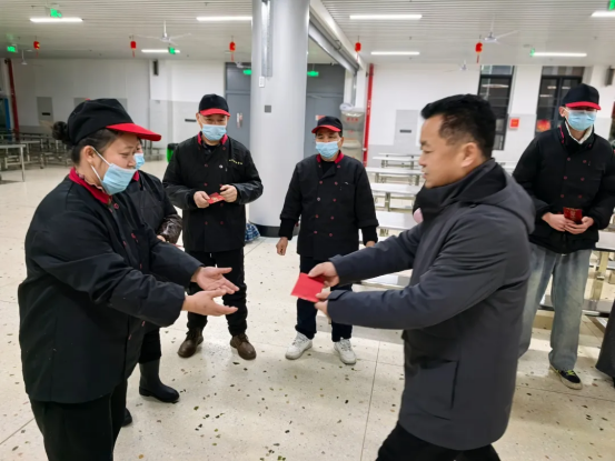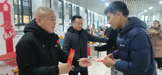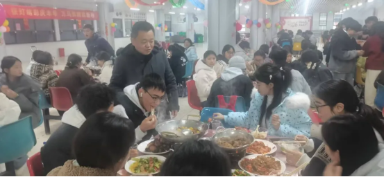 年饭之前,党委书记郭光前、校长吴樵夫、副校长刘敏慰问了春节留校值班的保安、保洁、宿管及食堂工作人员,感谢他们坚守岗位,辛勤付出,保证了学校寒假期间各项工作的正常开展。