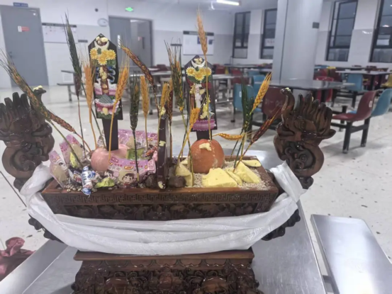 中午十二点,学校食堂三楼张灯结彩,充盈着欢声笑语。大红灯笼高高挂起,窗花福字映红了孩子们的笑脸。在2026祝福墙上,藏班学子们兴高采烈地书写着新年愿望,书记、校长等领导也纷纷为西藏班孩子们写下新年祝福语。为了让来自雪域高原的孩子们吃到可口的“家乡味”和地道的“岳阳味”,学校后勤部门精心准备了丰盛的年夜饭。