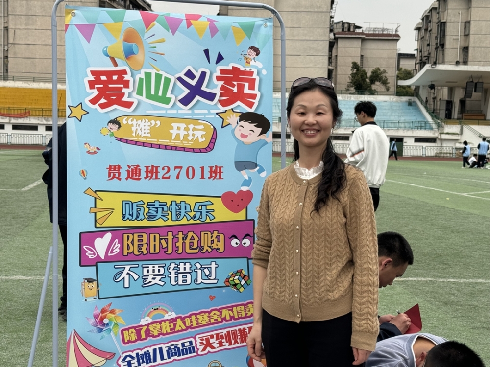 爱是传递。驻足在操场中间,回望各个摊位之前。春日的阳光温柔地洒在义卖活动现场。摊位上负责人尽显神通,载歌载舞,只为吸引更多顾客。跑道边,海报前;宣传声,交谈声共同奏响一曲和谐乐章。一件件手工艺品在阳光的轻抚下熠熠生辉,一件件出售的商品也在此刻仿佛有了温度。